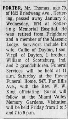 Soon after the 1940 census taker visited Porter, he and his family moved to Ohio and eventually settled in Montgomery County.