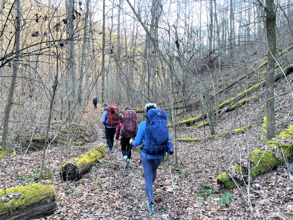 The biggest lesson was: do not believe everything the weather forecasters say. There was so much worry and fear about this hike that it impacted the opportunity to have an excellent time for some. It was supposed to be a “Snow-mageddon” on Sunday morning. Many feared walking in 8-10 inch snow for miles to their cars. A few had to walk in some snow, but most hikers completed the trail to Morehead before the snow accumulated on the Trace.