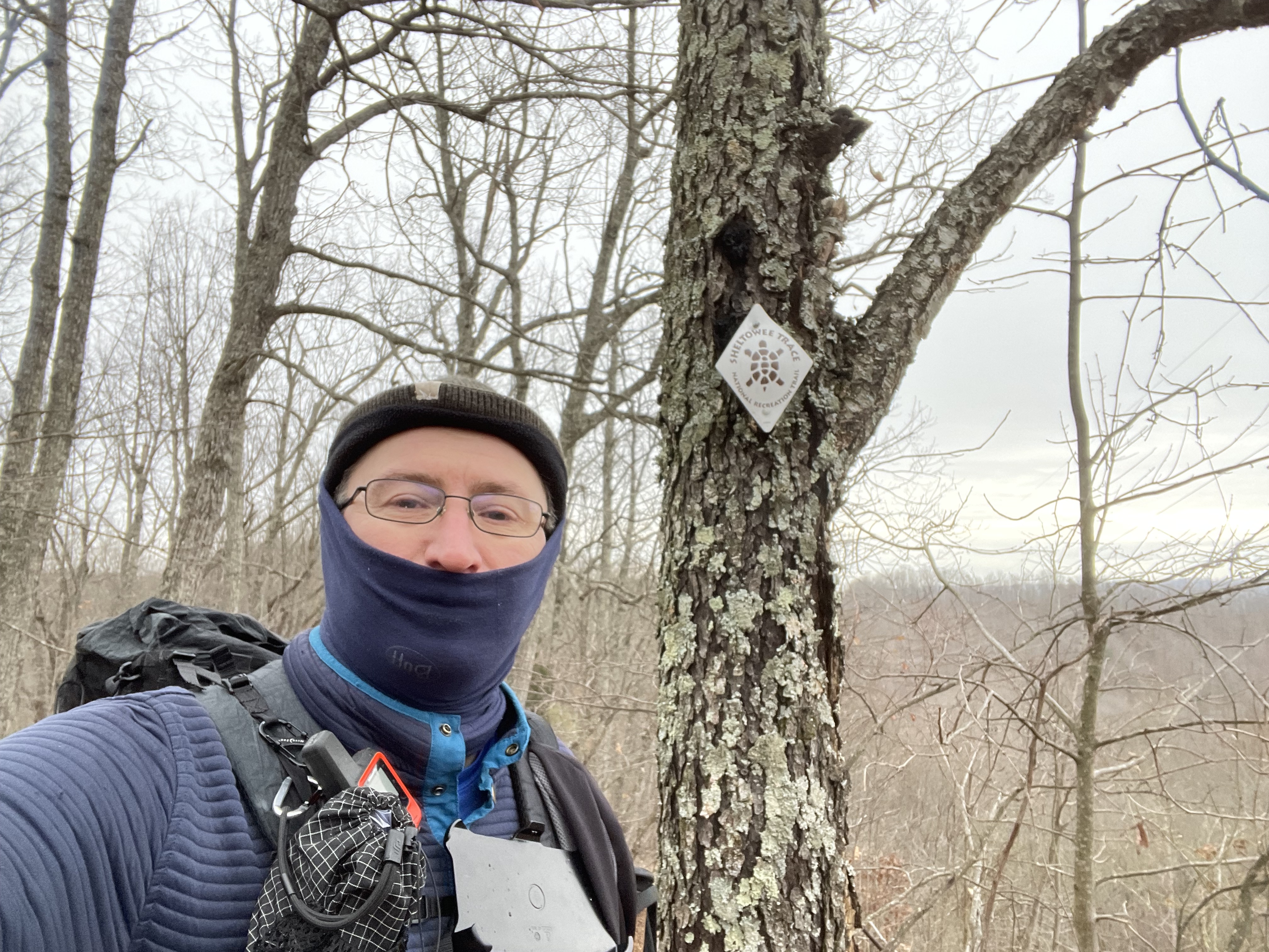 Sheltowee Trace Association Director Steve Barbour was there, as well as several volunteers and board members, to load the shuttles for the half-hour drive to the northern terminus. There were a few hikers that were still loading their packs and making final preparations. The thermometer showed 26 degrees when the last hiker climbed into the van to depart.