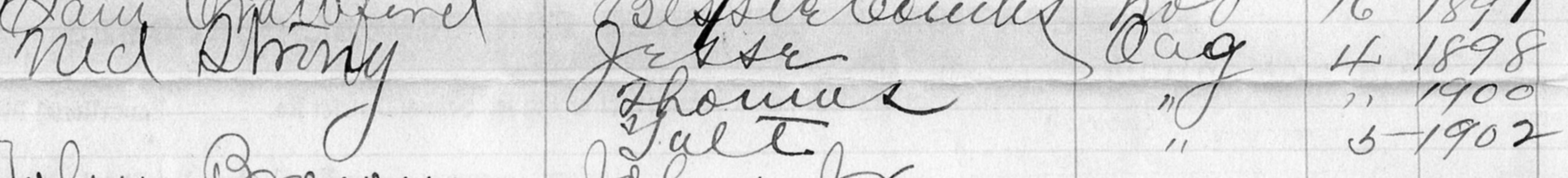 Joseph Talton Strong was born in Shuckey Bean Hollow, about 4 miles from Jackson on August 4, 1902. He was the third of eight children born to Edward Harry and Emma (Russell) Strong. Joseph was the grandson of Henry Strong and Patsy (Spicer) Strong. Henry Strong and his wife, Patsy, were born to slave mothers and their white masters shortly before the Civil War.