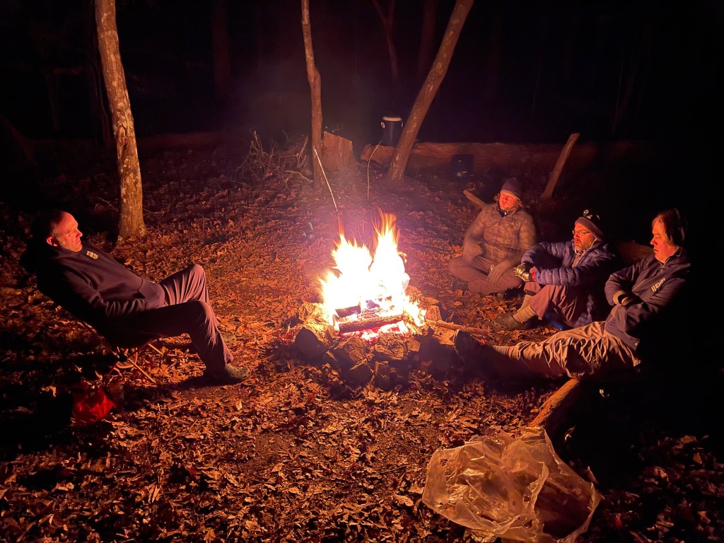 When I arrived at camp, several hikers had their tents up and were gathered around the fire. Many conversations were had about finishing early and what they would do to fill up their night since some arrived at camp about 11:45 a.m. I stepped away from camp for a little while to have dinner with my family in Morehead to celebrate my 50th birthday and then returned. Steve Barbour conducted the Saturday night meeting, and one by one, most faded away to their tents not long after the sunset in the western sky.
