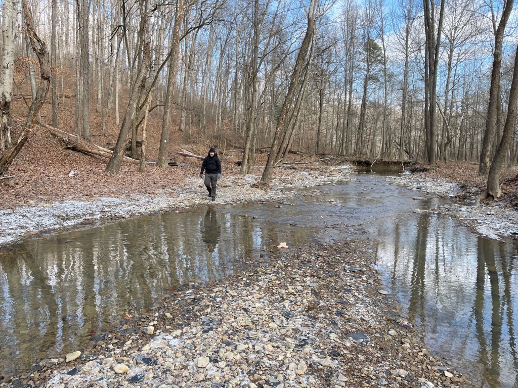 The short trip over the hump and down to Sulphur Branch brought a pleasant surprise as the water was not as high, and no diversion was needed to get across. From that point, it was up the ridge and over, through the pioneer weapons area, around Cedar Cliffs, and down the valley to the Clear Creek Campground entrance.