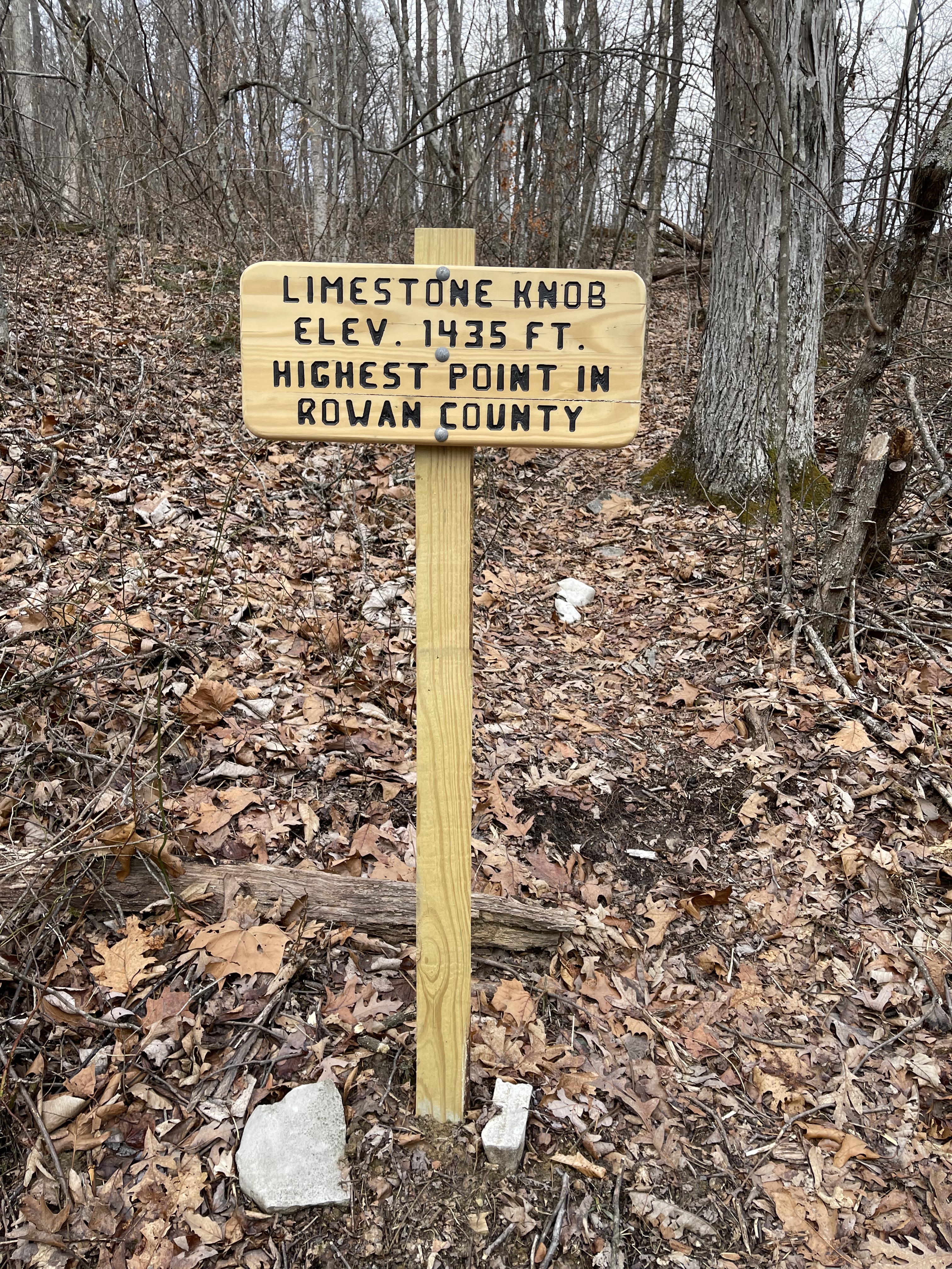 Back on the trail, we walked the hilltop on a mix of gravel and dirt over past the bike trails to the Limestone Knob trail maker. The climb to the top of Limestone Knob was not terrible, but the view needed an upgrade. I still say it is worth it to climb up there at least once in your life to say you have been there. Back on the trail, we made our way around the ridgetop to the intersection of the old Sheltowee Trace before it was rerouted to go down Main Street in Morehead.