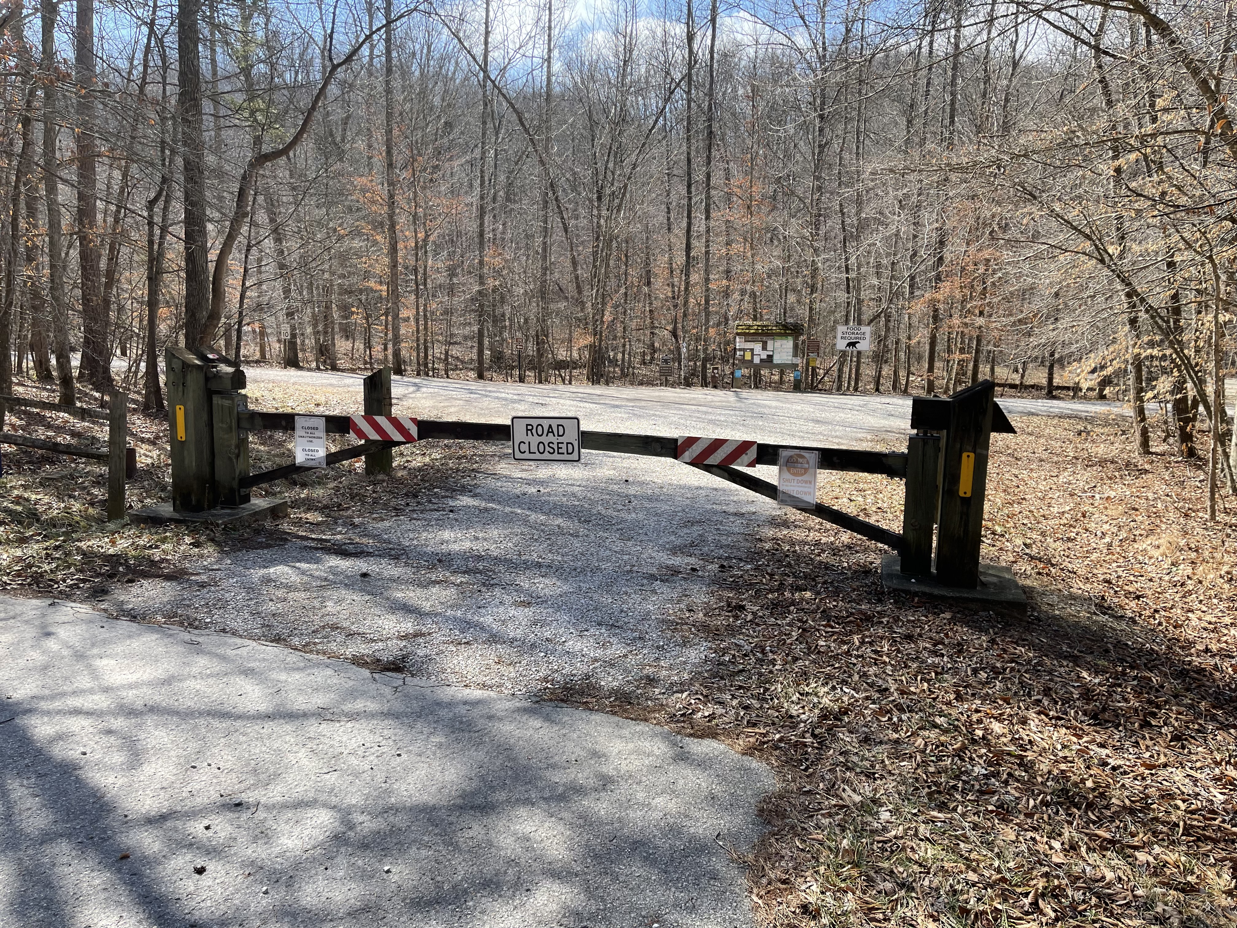 Not so much chatter and lots more huffing as we left the blacktop and climbed a significant up to the gravel forest service road. While not super steep, the climb and its very few switchbacks present an early morning challenge, but not one that cannot be surmounted with some time and steady steps. After climbing up the hill, it’s out onto the gravel road and around the ridge tops. I left the trail and enjoyed the walk to the overlook and the climb up Amburgey Rocks. The view is nice this time of the year through the trees and will be gone when the leaves pop out in a few short weeks.