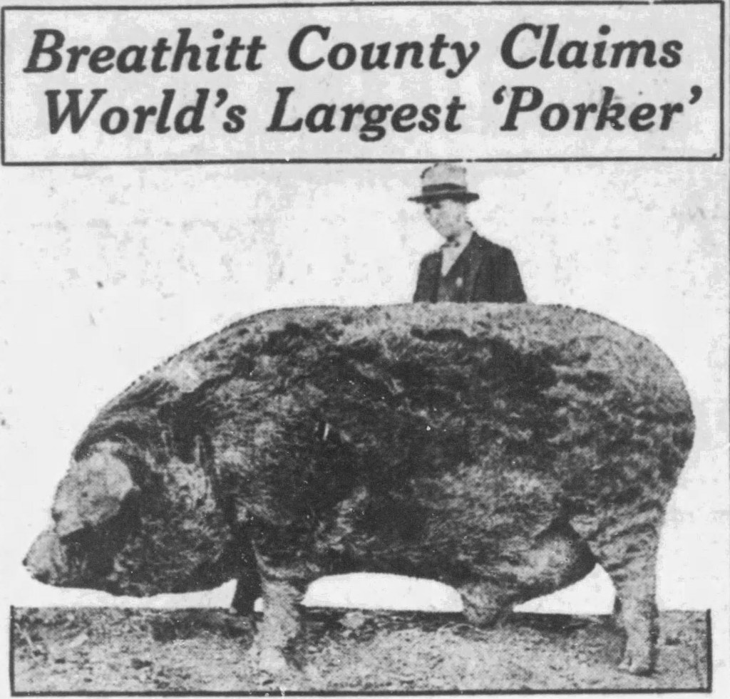 Through the centuries, many strange events have happened in Breathitt County. Murders, killings, feuds, and human tragedies impacted the daily lives of the people of our area. Natural formations, minerals, abundant water, and unusual weather are found in Breathitt County home. So many events and occurrences happened here that still defy explanation, but it took an oversized Poland hog for the world to ask if we really “Believe It Or Not.”