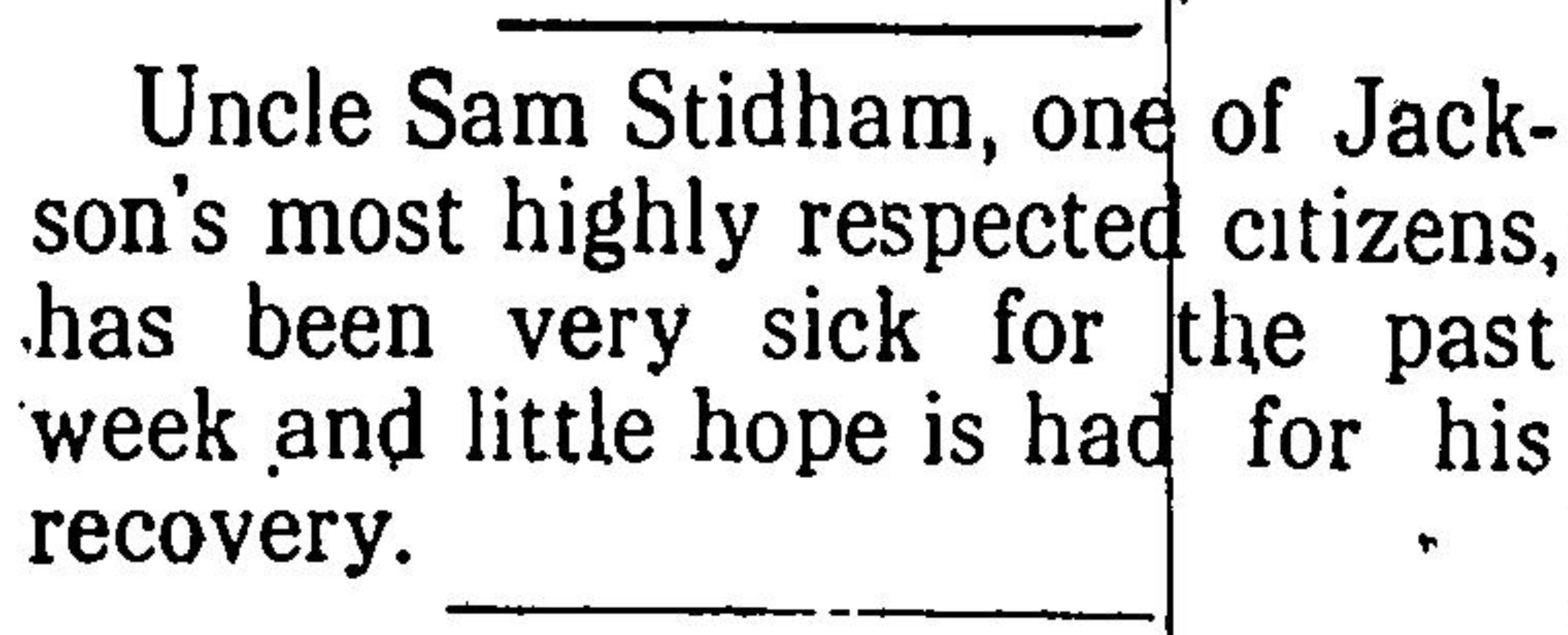 Samuel B. Stidham 26 (born January 1874) Adopted Son