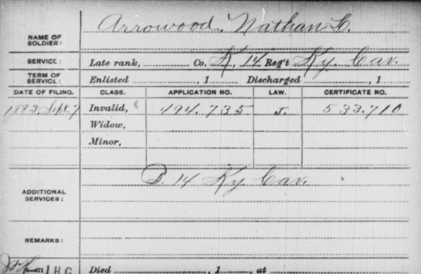 Mustered out- 1864, March 24 at Camp Nelson, Jessamine County, Kentucky- age 45