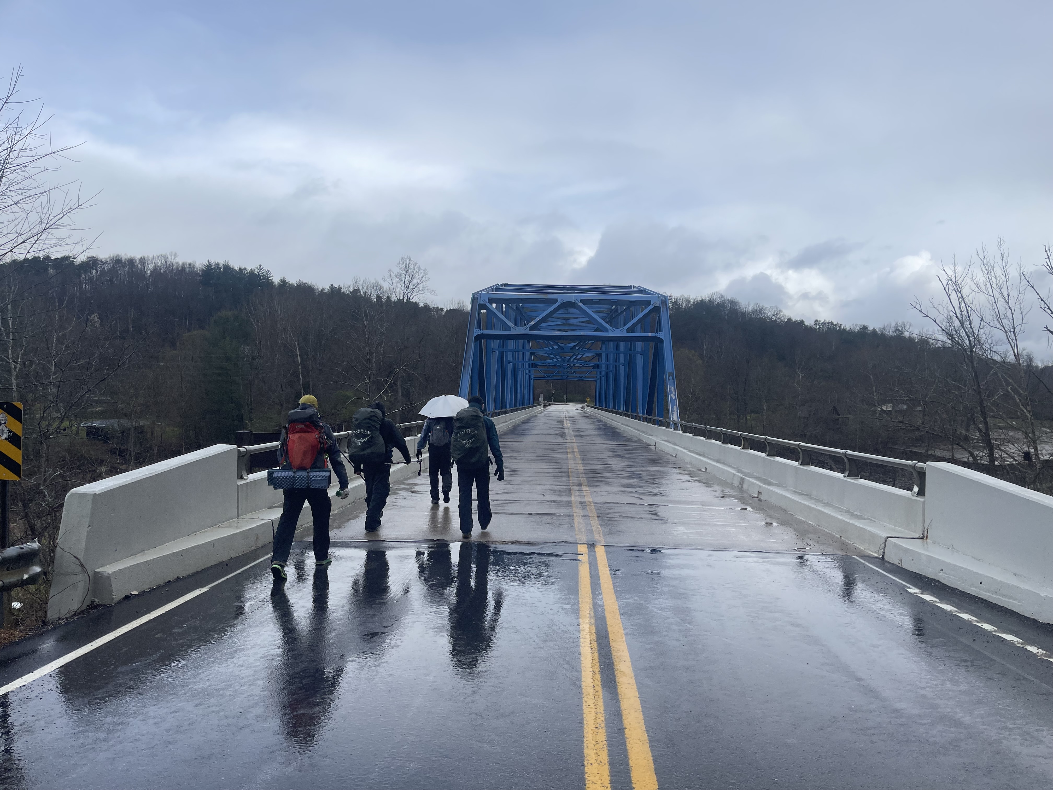 “In the early morning rain…”New friends at Lago.Sunshine in Heidelberg.Saturday night encouragement to speed up.The Big Sturgeon Creek mural.Off to the races.Rain and snow on Highway 399.Open fields at the top of Heidelberg Hill.Crossing the North Fork of the Kentucky River.Walking in the rain at Cressmont.A van ride to Levi Todd Road.A rest at the Heidelberg Pentecostal Church.A nice view at Bear Track.Resting after crossing Sinking Creek.Photographing the most photographed house.Field camping at Lago.Supper and rest at Lago Linda.The other side of the tracks at Heidelburg.Oil rigs at Hollerwood Park.Lots of wildflowers in bloom.New friends who hiked with me.New drop point and instructions.Air conditioning and cold drinks at Lago Linda Cafe.Hiking Cressmont Road along Sturgeon Creek.Sunday sunrise at New Virginia Ridge.“Steve Talk” and brownies.Fun times in the Limestone Crawl.Resting beside Highway 399 after climbing Heidelberg Hill.Lady Slippers in bloom.Crossing a cold Sinking Creek.Rest before the Heidelberg Hill.Bookie in the Limestone Crawl.Hiking through Sinking Creek.None of our hikes are possible without great volunteers who maintain the path we walk. Thank you for preparing the trail for Hike Five.