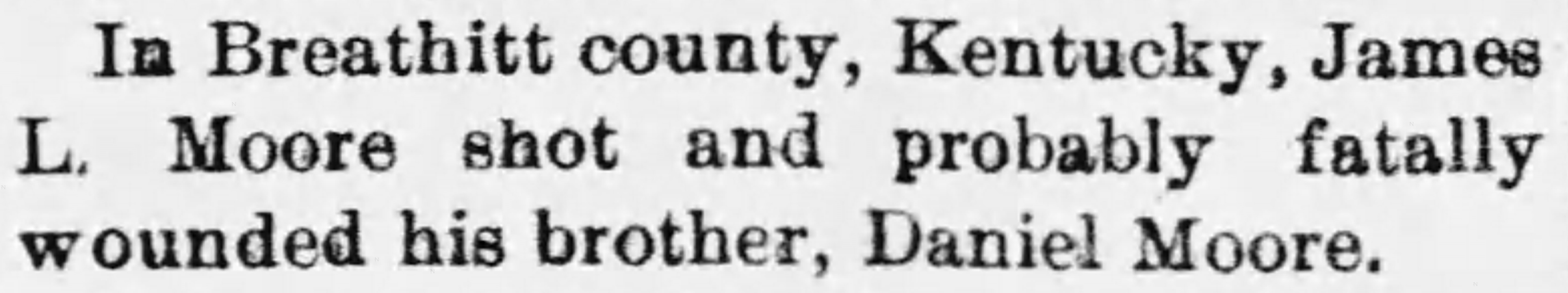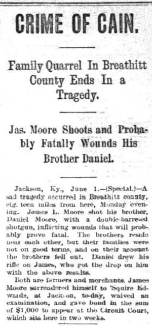 Not all violence in Breathitt County’s past was related to the feuds. A long-running family dispute ended with one brother fatally wounding another. A true Breathitt County tragedy has impacted both families through the years. James Lewis and Daniel Moore forever changed the course of the lives of their families based on the decisions they made one warm day in May 1892.