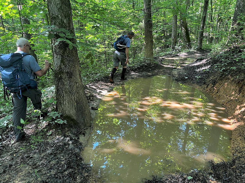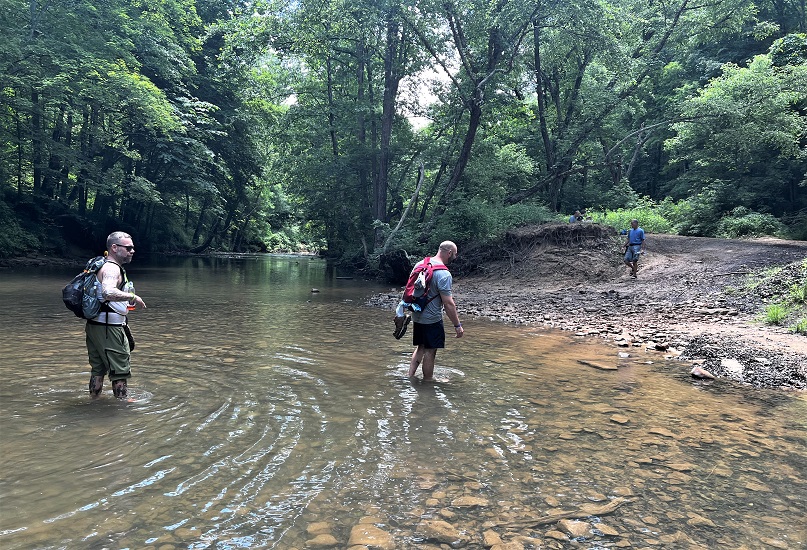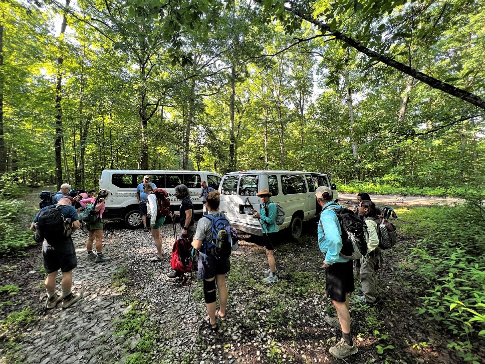 The June Hike was a little cooler but still in the warm range. More than 40 hikers set out on Saturday morning, June 11, after the hour ride to S-Tree Road. The hikers set off into the woods and headed to the mouth of White Oak Creek.