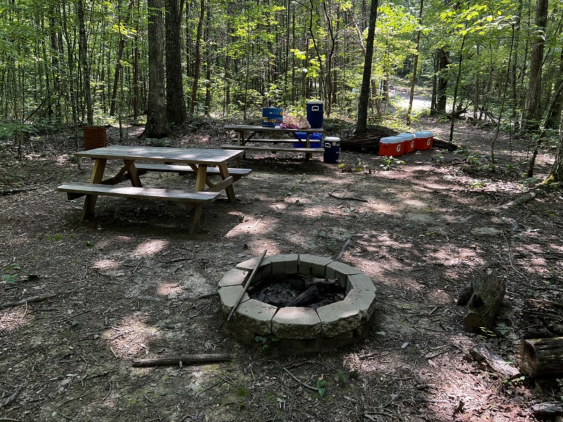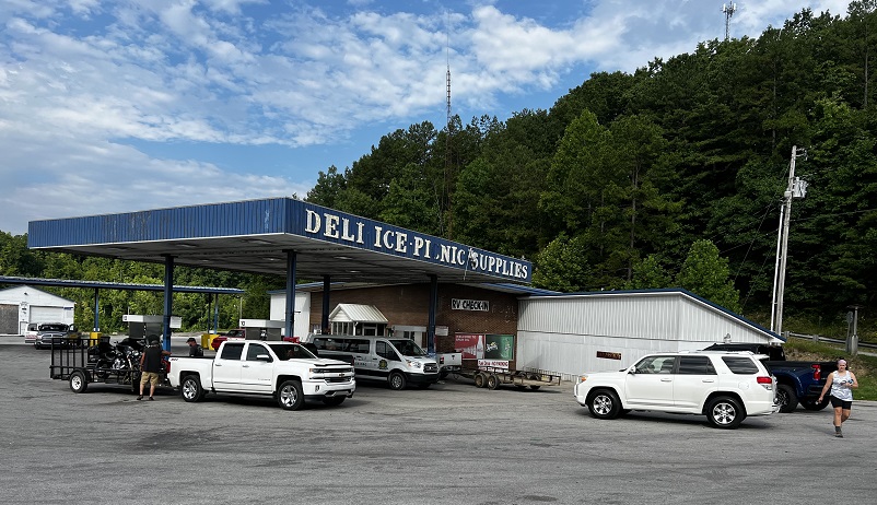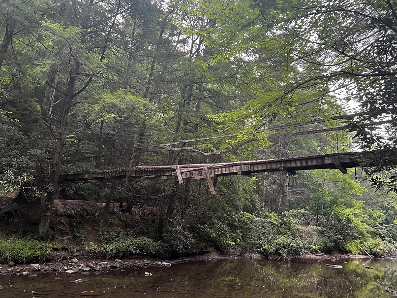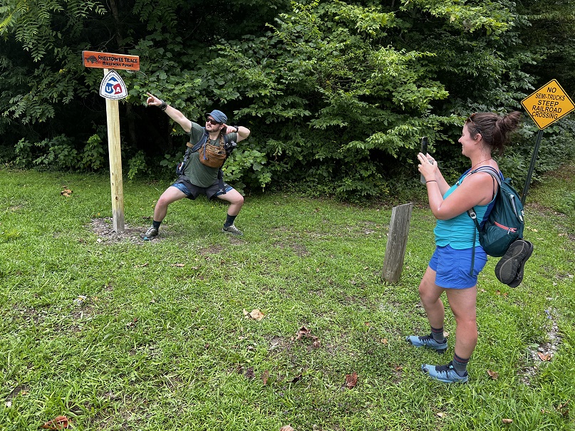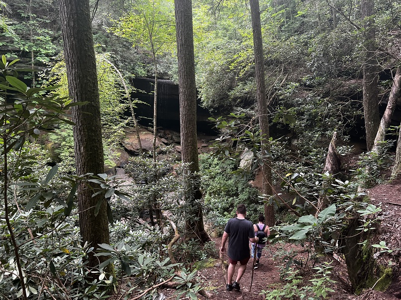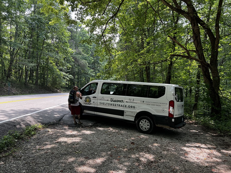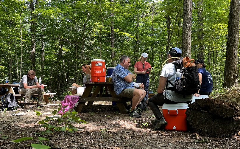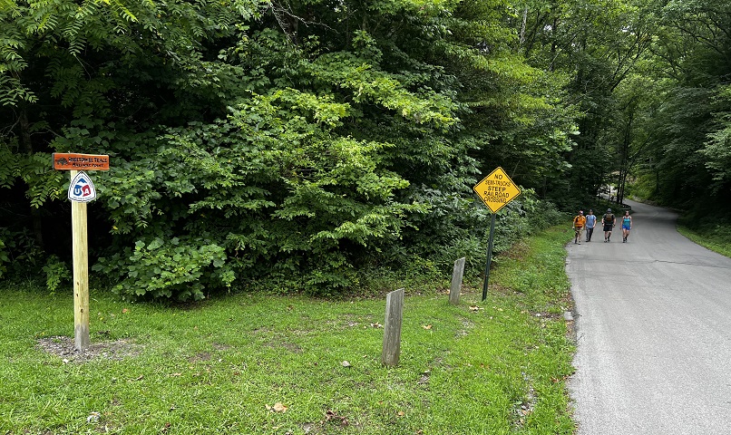 Hikers participating in the 2022 Sheltowee Trace Challenge cut their way through 4000% humidity and temperature in the mid to upper nineties. The hike started with a downhill on a roadway, followed some blacktop, and eventually returned to the woods.