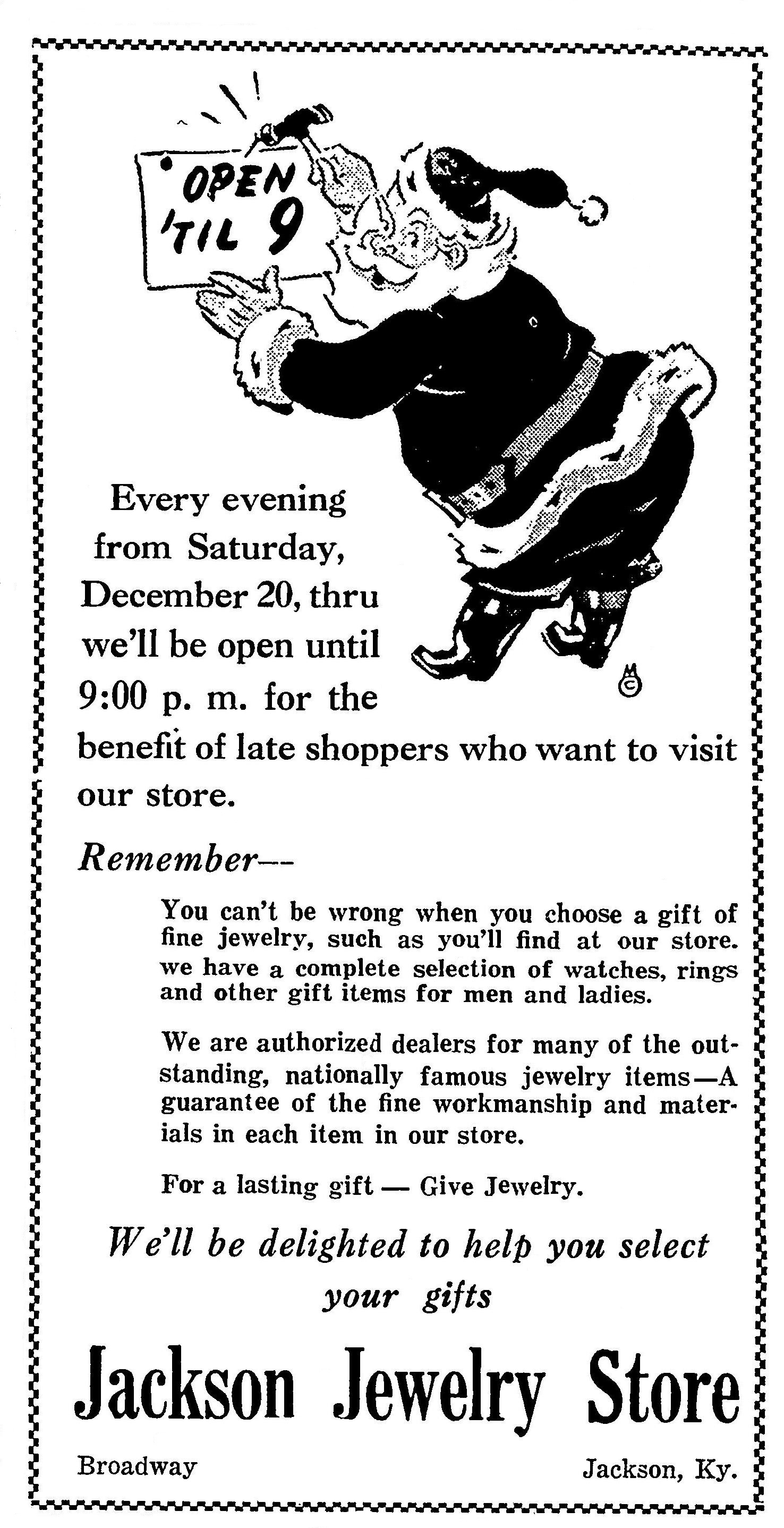 Here is just a small sample of the black-and-white ads that filled the pages of Jackson’s newspaper around Christmas time over the years: