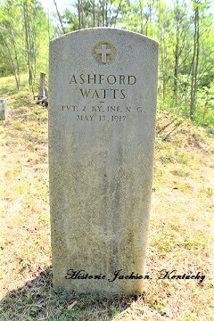 Ashford Watts was one of the throngs of Breathitt County men and boys who rushed to volunteer for a chance to “Kick the Kaiser” at the beginning of World War I. As the patriotic spirit soared, Ashford enlisted in Company F, Second Kentucky Infantry along with many boys from the Lost Creek area of Breathitt County on April 9, 1917. He and his company were assigned to Eastern Kentucky to guard vital railroad tunnels that helped supply coal to the cities of Central Kentucky and the war effort.