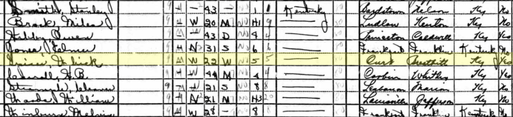 In February 1936 while awaiting trial, Whick Spicer, then 19, sawed his way out of the Breathitt County Jail and escaped at about 4:00 a.m. According to newspaper reports, Spicer was not locked in his usual “all-steel cage” and took advantage of the opportunity to saw away two bars of a window on the second floor of the jail and slid down a rope made from bed sheets.