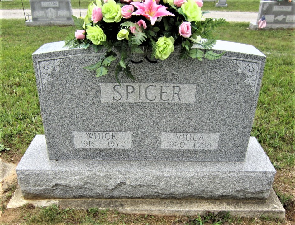 Spicer, the son of Seldon and Lula (Spicer) Spicer, found work and married on November 12, 1946, in Scott County, Indiana to Viola Howard (1920-1988), a cousin of Evalee. Spicer and his new wife settled in Scott County, Indiana where Whick worked for the Morgan Packing Company. He attended the Baptist Church. Whick Spicer died of a heart attack on September 22, 1970, and is buried with his second wife in the New Providence Cemetery in Austin, Scott County, Indiana.