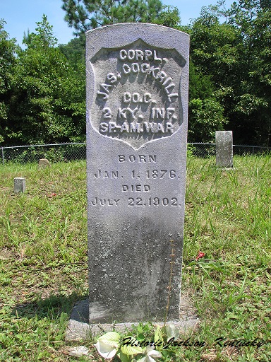 On November 1, 1898, at the tender age of 22, James Cockrell volunteered in Jackson for a two-year term. With other young men from Breathitt County, the company marched off and fought in the War with Spain (Spanish-American War). James Cockrell was appointed cook for Company D of the 4th Kentucky Infantry. He later served as a Corporal in Company C of the 2nd Kentucky Infantry. He and the company were mustered into the United States Army on November 22 at Anniston, Alabama. They served part of their enlistment before an armistice was signed and the Jackson unit was mustered out on February 12, 1899, in Anniston. They never heard a single shot fired in anger.