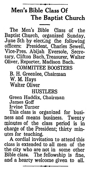 Secretary of the Men's Bible Class at the First Baptist Church.