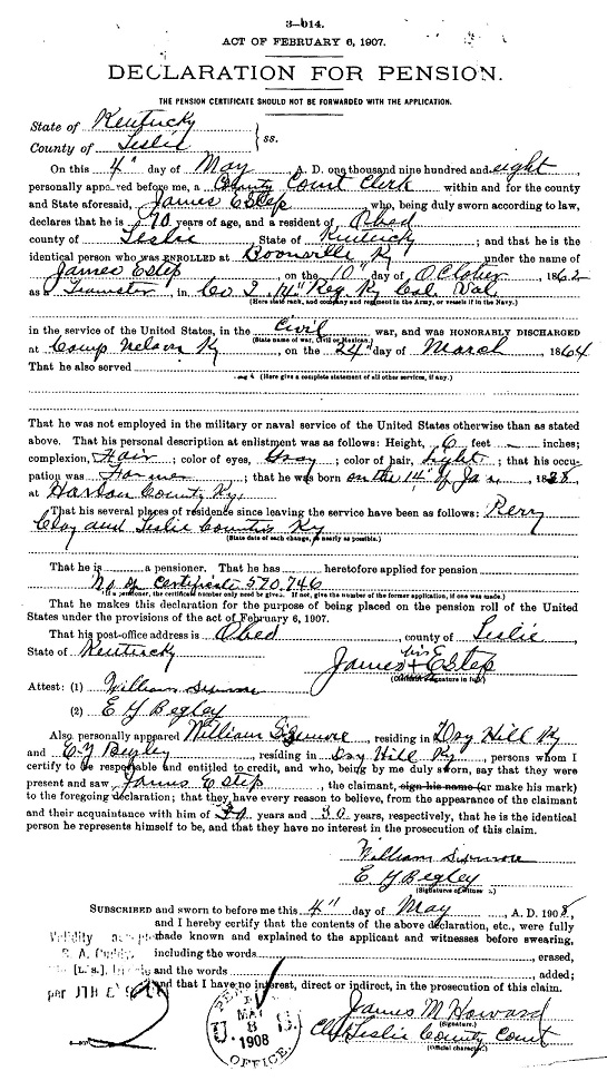 Born – 1843, March 5 in the Bowling Precinct, Perry County, Kentucky