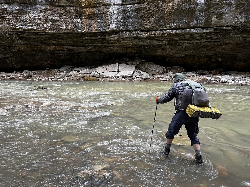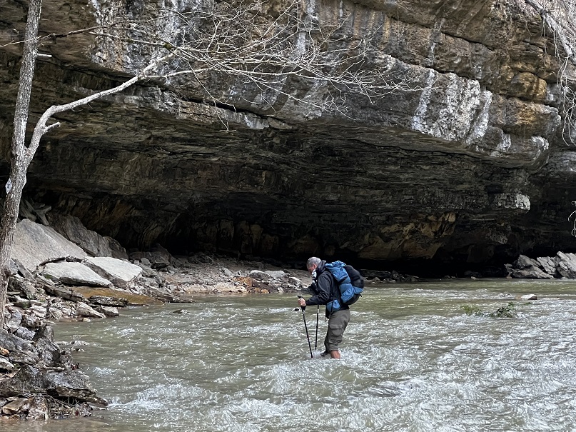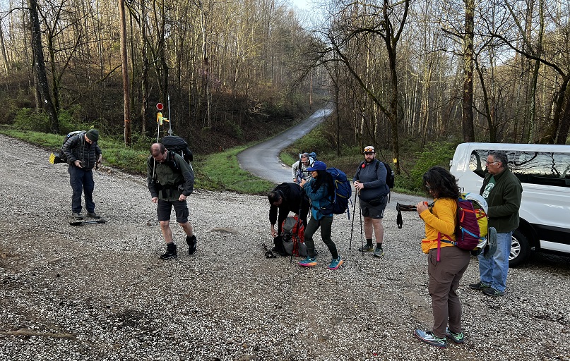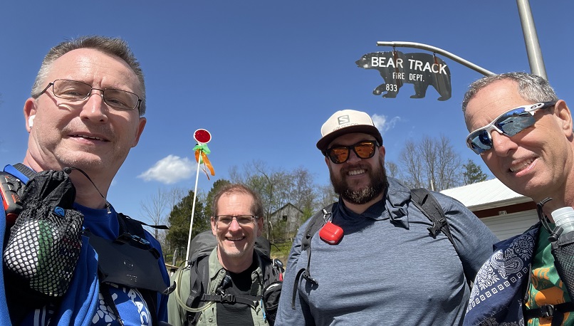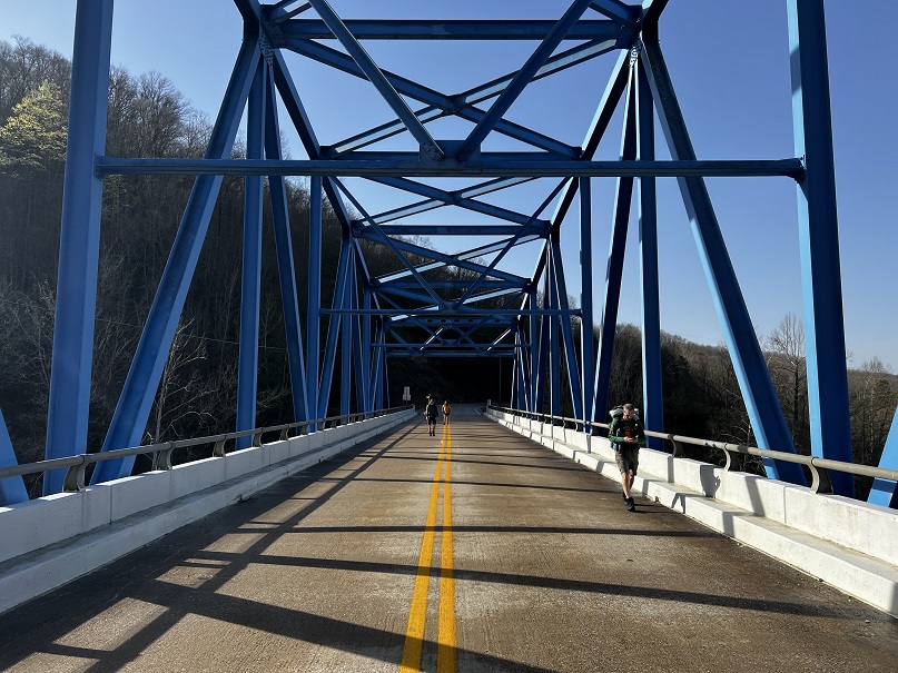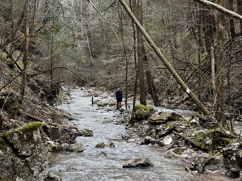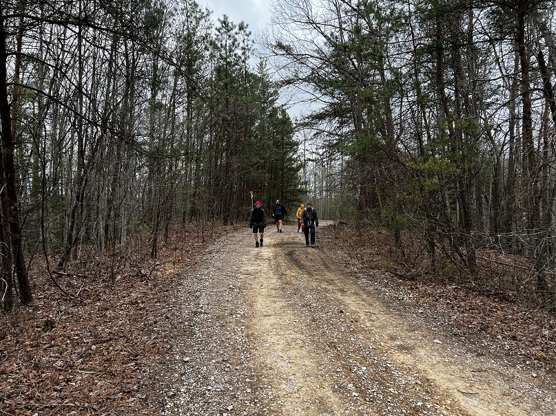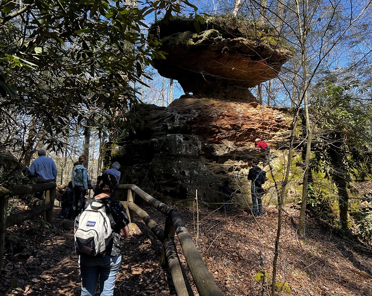 Eight of us ventured out the first weekend of April to complete Hike Four of the 2021 Sheltowee Trace Challenge. The schedule for the month of April was altered due to the Easter holiday, and hikers were spread across three weekends. Team Heron hiked from Todd’s Road to Lago Linda Hideaway on Saturday and onto Natural Bridge State Park on Sunday. The hike was very nice, with clear skies and warm weather. Saturday was highlighted by strong winds of more than 50 miles an hour and a power outage at Lago Linda, but not until after supper was ready at the cafe.
