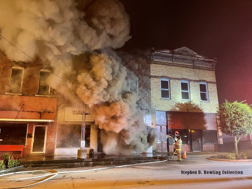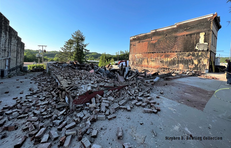 In the early morning hours of September 17, 2021, a fire broke out in the back of the Day Building on Main Street. Flames spread throughout the building within minutes and threatened the Hargis Commercial Bank building. Large plums of smoke could be seen billowing out of the top of the Hargis building as smoke filled the structure. At least three times, the flames burned through the adjoining wall and ignited areas in the Hargis Building, but firefighters managed to save the building. Now the Hargis Commercial Bank Building stands alone at the northeast end of Main Street.