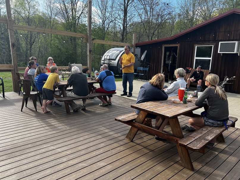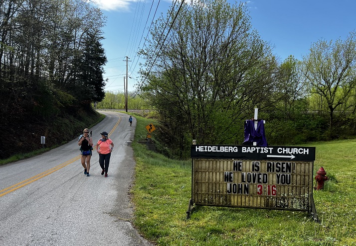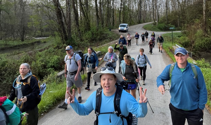 Forty-eight hikers left the intersection of Todd’s Road and Cressmont Road on the morning of April 15. Team Turtle Heron hiked about 14 miles to Lago Linda Hideaway on Saturday and more than 18 miles into Natural Bridge State Park on Sunday. Saturday night was highlighted by a good supper at the Lago Linda cafe, which included lasagna, salad, and peach cobbler. The hike was very nice, with clear skies and very warm weather. The threat of rain on Sunday helped move hikers along quicker than usual. Most hikers missed the heavy rain, but a few had the chance to cool off a little before getting to their cars.