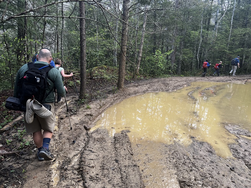 Farewell, five-pound drop. Heavier packs, elevation change, and long miles lie ahead as we skip the Red River Gorge section and continue North to Morehead in May. Clean up that equipment, walk or hike a little over the next few weeks, and prepare for the May hike.