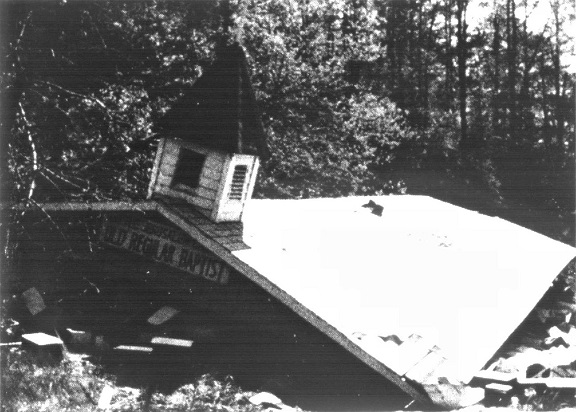 A view of the collapsed Little Jerusalem Old Regular Baptist Church from a page 6 story in The Jackson Times on May 11, 1972.