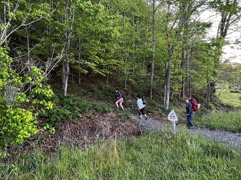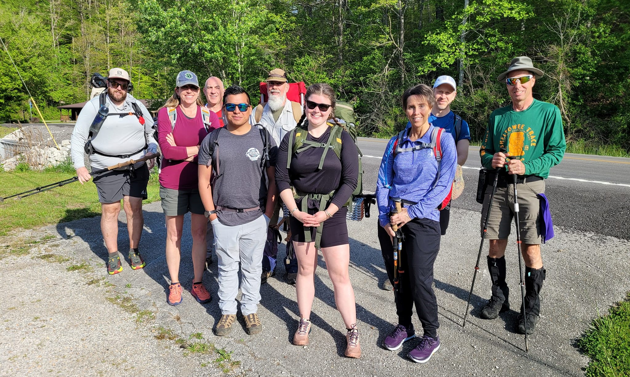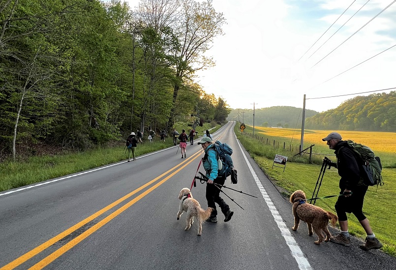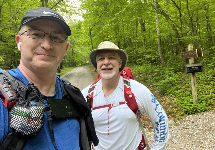 The May hike was a long (35 miles) trek through some difficult terrain. Don’t be worried- you can handle it. Be aware and be prepared. The hike begins with an uphill climb from the Red Barn to the ridge. With several small ups and downs, you make your way over the hill to Richardson Road. Then back up the hill and basically undulating ridge walk to Furnace Arch and then more of the same until the trail drops over Mount Misery and down to Clear Creek. There is no available water in this 8.5-mile stretch. Be sure to camel up with Steve or from Clear Creek as the next section is dry too. There are a few downed trees in this first section but nothing major.