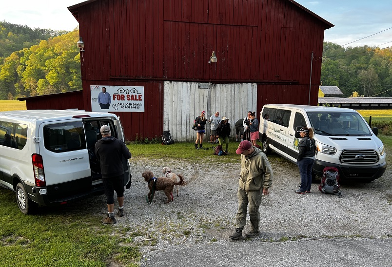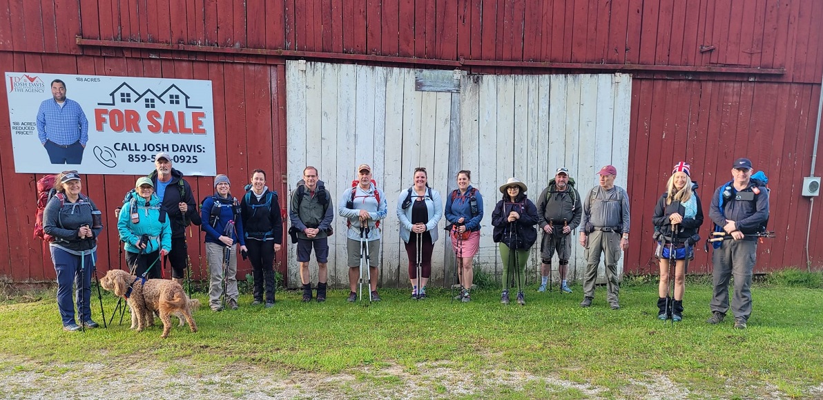 Sunday dawned with a beautiful sunrise as hikers got up and going early to attempt to outrun the threat of rain and the possibility of strong storms. Cross the dam and up the hill to the ridge top. On the way over to Amburgey Rock, the trail is tough but nice. There are several more downed trees in this section, so be prepared to climb over these large oaks. The trail follows an old forest service road past several bike trails and around the side of Limbstone Knob before heading down into Mill Creek for a long asphalt walk to Clearfield and Morehead. Lightening, ominous dark clouds, and thunder helped quicken the pace of many Heron hikers. Ultimately, most proved unable to outrun the deluge of rain and wind that the late morning/early afternoon storms brought.