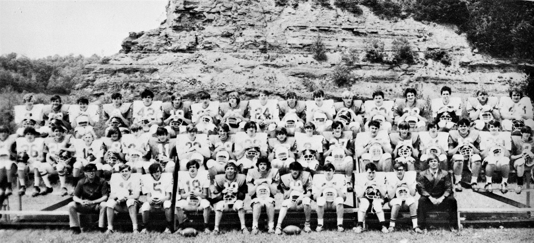 After the first day of practice, Gray said, “All of the boys seem to be in good shape, and they seem very enthusiastic about starting.” After the third day of practice, Gray announced his starting line-up for the Morgan County scrimmage, which included: center- Greg Elkins; left guard- Wallace Howard; left tackle- Daniel Haddix; left end- Eddie Hardin; right guard- Dennis Griffith; right tackle- Wayne Watts; right end- Robert Privett; quarterback- Mark Wireman; right halfback- Charles Neace; fullback- William Hand: left halfback- Ronnie Torok, and also left halfback- Johnnie Prater.