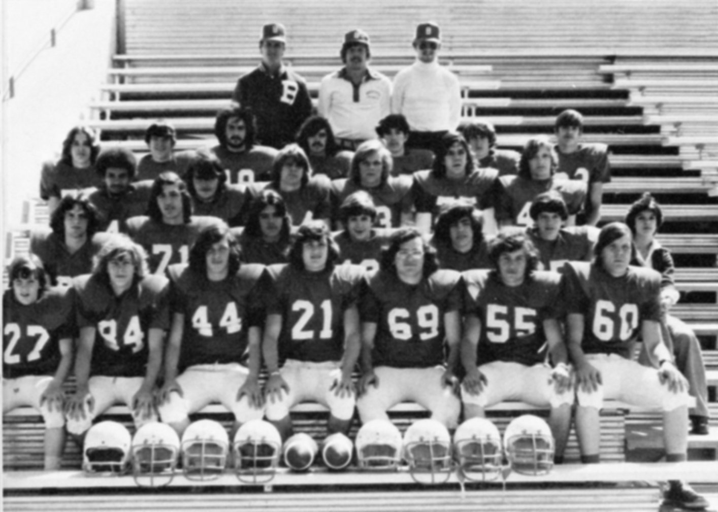The high school started running regular pep buses to each game, and fan support never wavered. Through the tough loss streak, Hilton continued to drive home his theme of “we won’t quit.” Hopes continued for the opening of the new BHS football stadium. The construction crews continued to move the date, and the 1975 team never had the opportunity to play a home game on the new field.