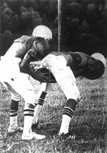 Some final statistics: Larry Deaton carried the ball 16 times for 61 yards. Danny Back carried it 12 times for 49 yards. As a team, they carried it 49 times for a total yard gain of 156 yards and made 14 first downs. Danny Back completed five of 18 passes for 71 yards. The defense was led by Mark Trent with six tackles and four assists by David Henry with five tackles and five assists.
