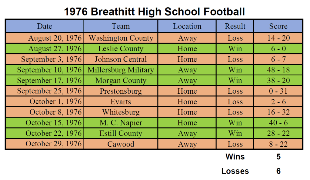 This week, I begin a new series and take an extended look at the games and events of the seasons of Breathitt Football. This week, we explore 1976.