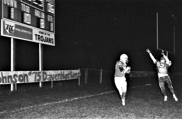 Of defense, David Henry led with 10 tackles and 9 stitches in his nose. Doug Johnson had 7 tackles and 2 assists, while Barry Sams and John Bach made 6 tackles each. Two Trojan tumbles were recovered by Breathitt’s Ron Francis.