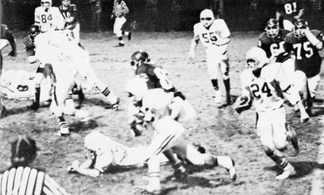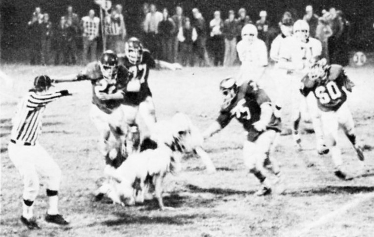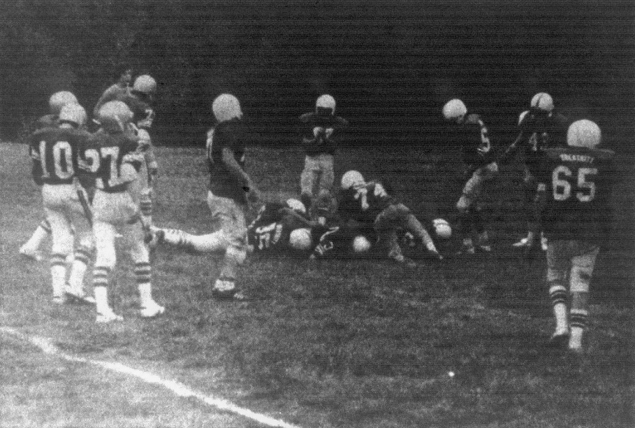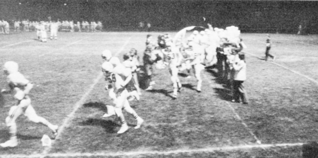 In passing David Napier completed three of four – one to Dean Feltner for 10 yards; one to Darrell King for 11 yards and the biggie of 58 yards to Danny Bach for the touchdown.