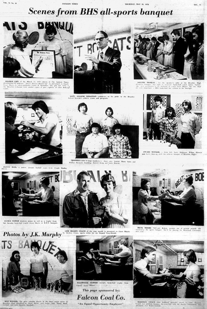 Coach Hilton again urged strong support from local fans Friday night at Breathitt Stadium. He said he and his assistants, John Gabbard and James Turner, and “all the Bobcats” are expecting a capacity crowd. – It will make the difference in a win or loss, Hilton stated. Also, Breathitt’s fine band directed by Kerry Davis will appear at halftime.