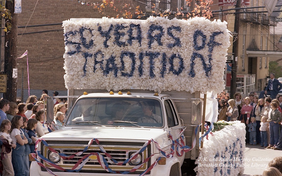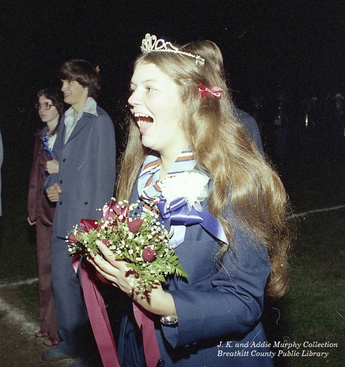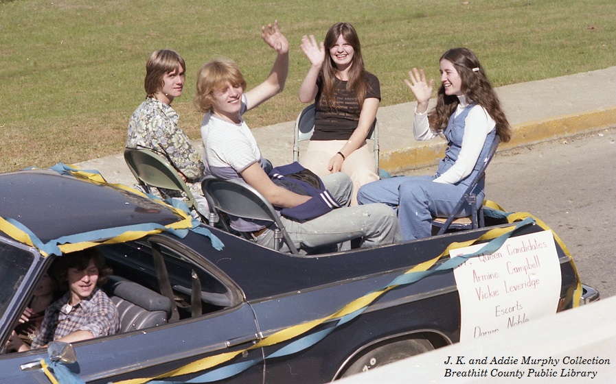 The 1977 Breathitt High School Homecoming, with the Theme “Happy Birthday, B.H.S.” was scheduled for October 21. The event was only a part of the larger celebration of the 50th Anniversary of the reopening of Breathitt High School. A large parade, complete with floats and bands, found its way through the city on the 21st, and thousands lined the streets to enjoy the festivities. Hundreds attended the large spaghetti dinner at the school to celebrate. The “main events” was the planned game with district rival Estill and the crowning of the 1977 Homecoming Queen at halftime.