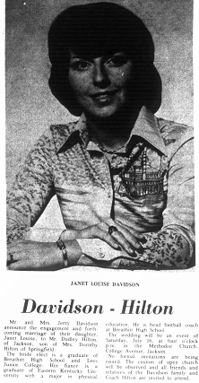Hilton announced his marriage to Janet Louise Davidson in the June 30, 1977, edition of The Jackson Times.