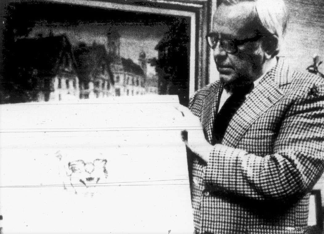 BREATHITT COUNTY BOBCAT…The new print by Ruby O’Donnell Haiflich is displayed by J. Phil Smith, president of The First National Bank which paid for the printing of same. The Bobcat, in living color, is centered in an outline map of Breathitt County and signed by all the coaches. Proceeds from the sale at $15 each will benefit the football program at Breathitt High. The Football Boosters Club is in charge of the sale of the prints which are available at several local stores.
