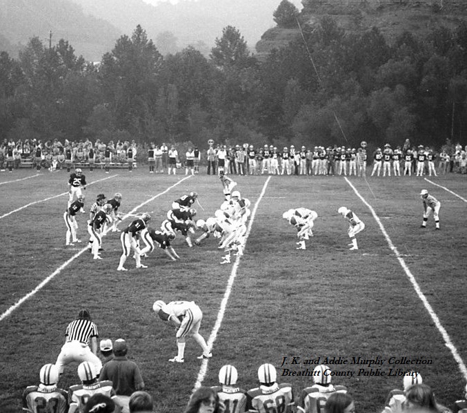 The game didn’t start off all that badly. Breathitt received on the initial kickoff and moved the hall 18 yards with two first downs. Breathitt fans, which equalled or surpassed in number Leslie fans, thought we were in for another good game.