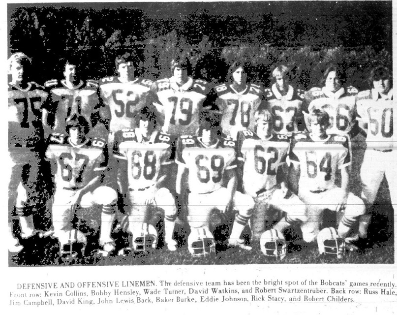 Four Bobcats received honorable mention last week for the All-State football team. They were Rick Stacy, John L. Back, Eddie Johnson, and Teddy Warren.