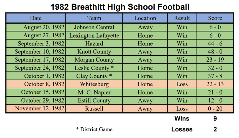 We continue an extended look at the games and events of the seasons of Breathitt Football. This week, we explore 1982.