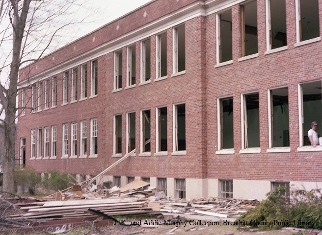 The demolition of old Breathitt High School started on March 18, 1982. That morning, just before the workmen started to pull up the flooring in the upstairs classrooms, Marie R. Turner made one final visit to the “jewel of her years” as the Superintendent of Breathitt County Schools. She smiled as she looked around the building one last time and talked with the contractor, Winfred Terry. Marie R. Turner told Winfred Terry that she “hated to see the old girl go” but knew there were better things to come for the students at the high school.