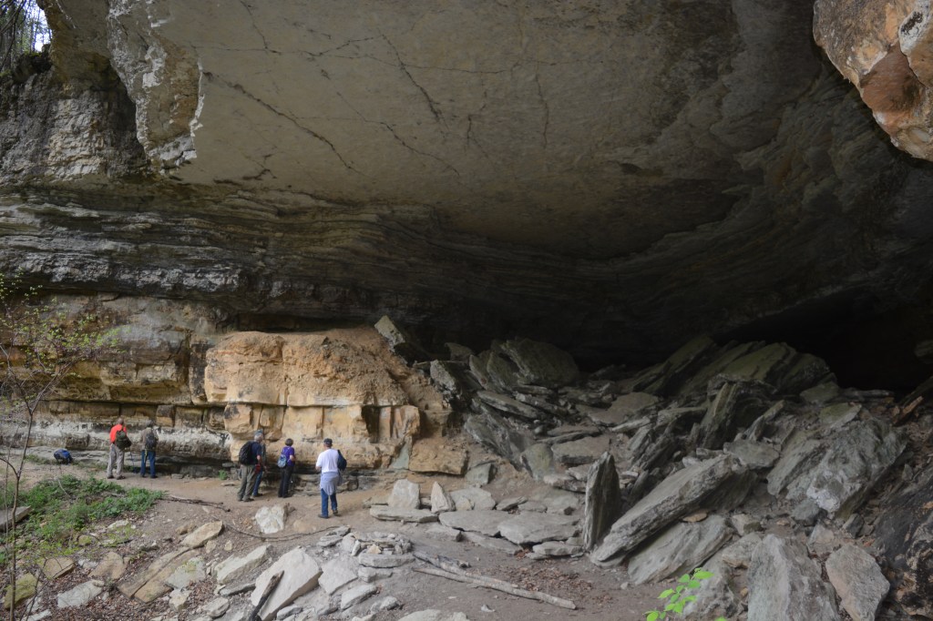 One of the largest caves in the Red River Gorge is the limestone cavern near the mouth of Hale Branch. The Sheltowee Trace passes over the cave, whose entrance lies between the trail and Gladie Creek. The cave is approximately 1/2 mile long and is reduced from 150 feet at the mouth to a six-foot opening at its head. Most caves in the Red River Gorge are closed to exploration and visitors due to White Nose Syndrome.