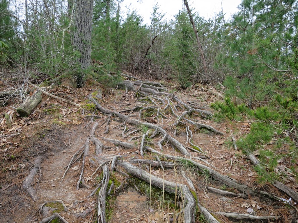 The Pinch ‘Em Tight Trail leaves Tunnel Rdge Road and intersects the Rough Trail #221. The Rough Trail (#221) crosses the Red River Gorge and is considered one of the “trunk” trails in the area. Many trails branch off the Rough trail as it makes its way east to west from Highway 715 to Highway 77.