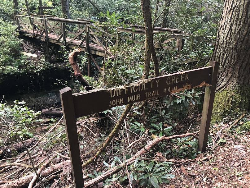 For many years, the bridge over the waters of Troublesome Creek has been only a memory. High waters and falling trees claimed this wet shoe saver, and no replacement has been constructed. Due to the remoteness of the area and difficulty getting materials to the sight, a creek ford is required here. There are two ways to cross Troublesome Creek- a direct through the creek ford or a slight upstream trek to find a shallow place.