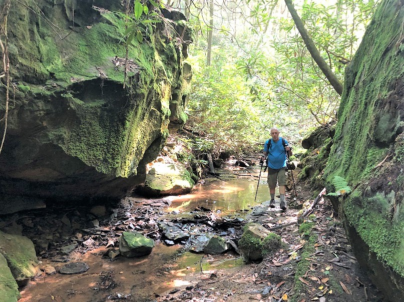 Please use extreme caution when traversing this section of the Sheltowee because the rocks are slick. The last thing you want is an early and unexpected bath.