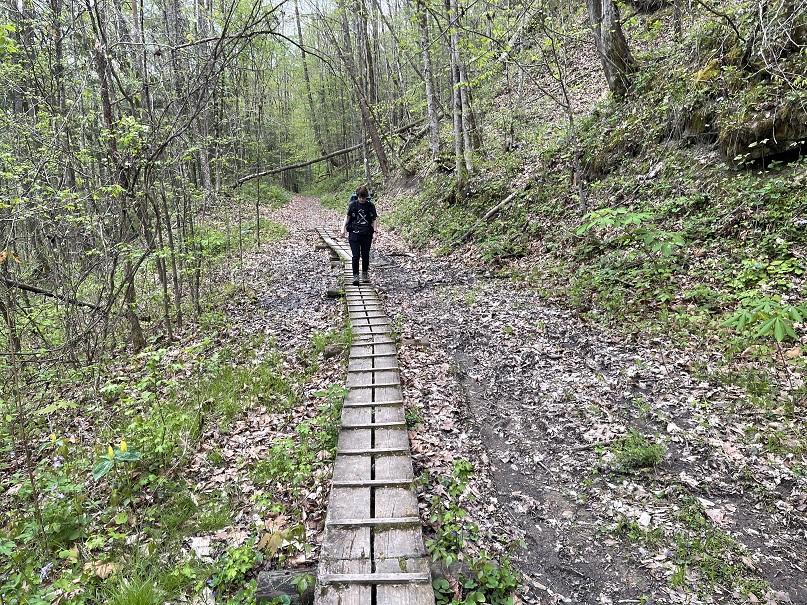 Near the mouth of Massey Branch, hikers will cross a small bridge and leave Tennessee. Hikers will reenter Kentucky and continue toward Peters Mountain.
