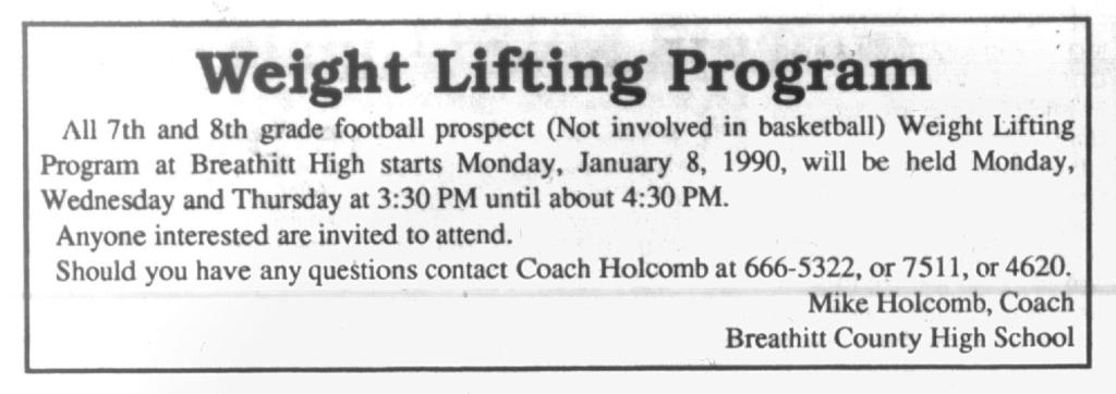 Yes, Breathitt High Football Bobcats will be exerting all their strength in their annual lift-o-thon scheduled for May 6.