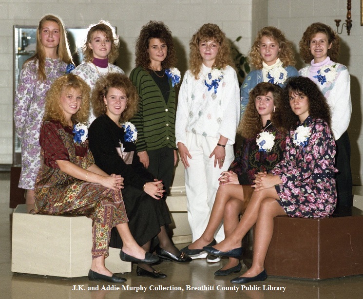 Karen Griffith, the cheerleader sponsor, introduced the cheerleaders and expressed appreciation to the parents. Stacy Chapman, and others for their contributions to the cheerleading squad. She introduced two seniors, Traci Hudson and Bethel Sheffel, and stated that she had enjoyed working with them and wished them well. She also introduced the sophomores and juniors. The sophomores were Melanie Mullins, Angie Brown, Crystal Gabbard, Patricia Lovins, and Heather Miller. From the junior class were Katrina Faulkner, Jana Abner, Tracey Combs, Donna Moore, and Andrus Douthitt.